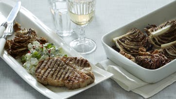 Drys koteletterne med salt og peber og steg dem i lidt olie i ca. 8 min. på hver side, til de er gennemstegte.