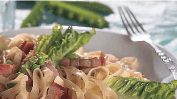 Tagliatelle med ærter og bacon