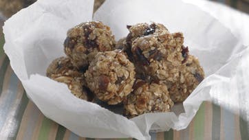 Hak figner og nødder og bland dem med tranebær, havregryn og sesam. Smelt smør, sukker og sirup på en pande ved lav varme. Vend havregrynsblandingen i sukkermassen, bland godt og lad det varme god igennem. Lad blandingen afkøle lidt og form den til 2 cm store kugler. Lad kuglerne afkøle helt på et stykke bagepapir. Opbevar de kolde müslikugler i en kagedåse eller en anden lufttæt beholder. Børnehjørnet