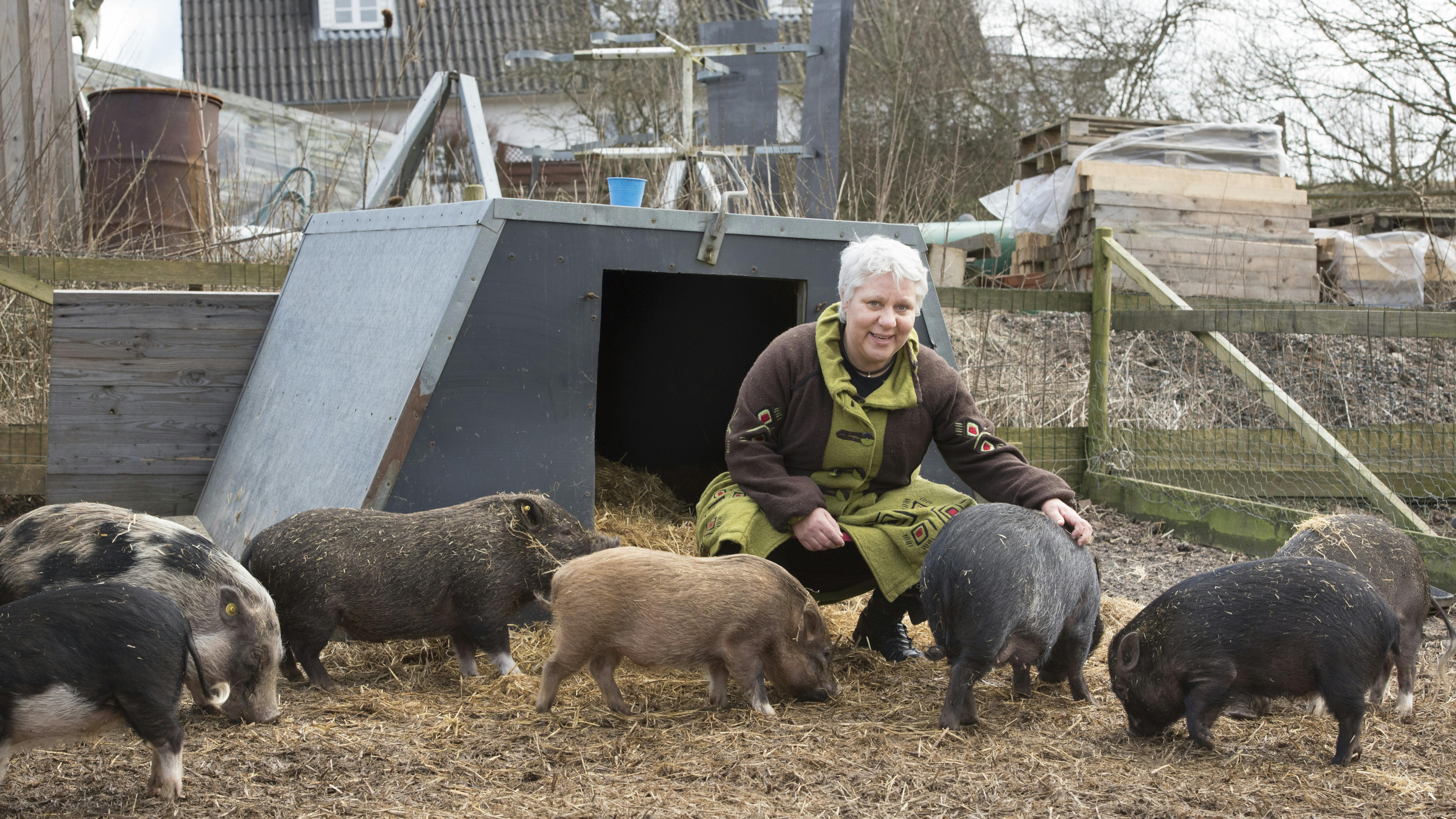 – Min mand og jeg havde haft et par økologiske slagtesvin på gården, hvor vi bor, så jeg var vant til at omgås dyrene. Jeg arbejdede på det tidspunkt som børnehaveklasseleder og gik desværre ned med stress. Efter nogen tid skulle jeg finde ud af, hvad jeg kunne beskæftige mig med, som gjorde mig glad, og så lå grisene faktisk ligefor.