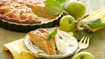 Lækker mazarinkage, der serveres med flødekum eller cremefraiche