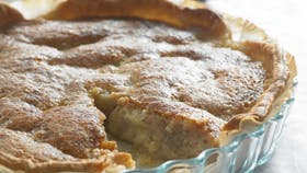 Kom pæregrøden i den forbagte tærtebund og fordel mandelmassen forsigtigt over grøden. Bag din pæretærte midterst i ovnen ved 200° i 20 min., til den er gylden. Server din pæretærte lun med cremefraiche eller flødeskum til.