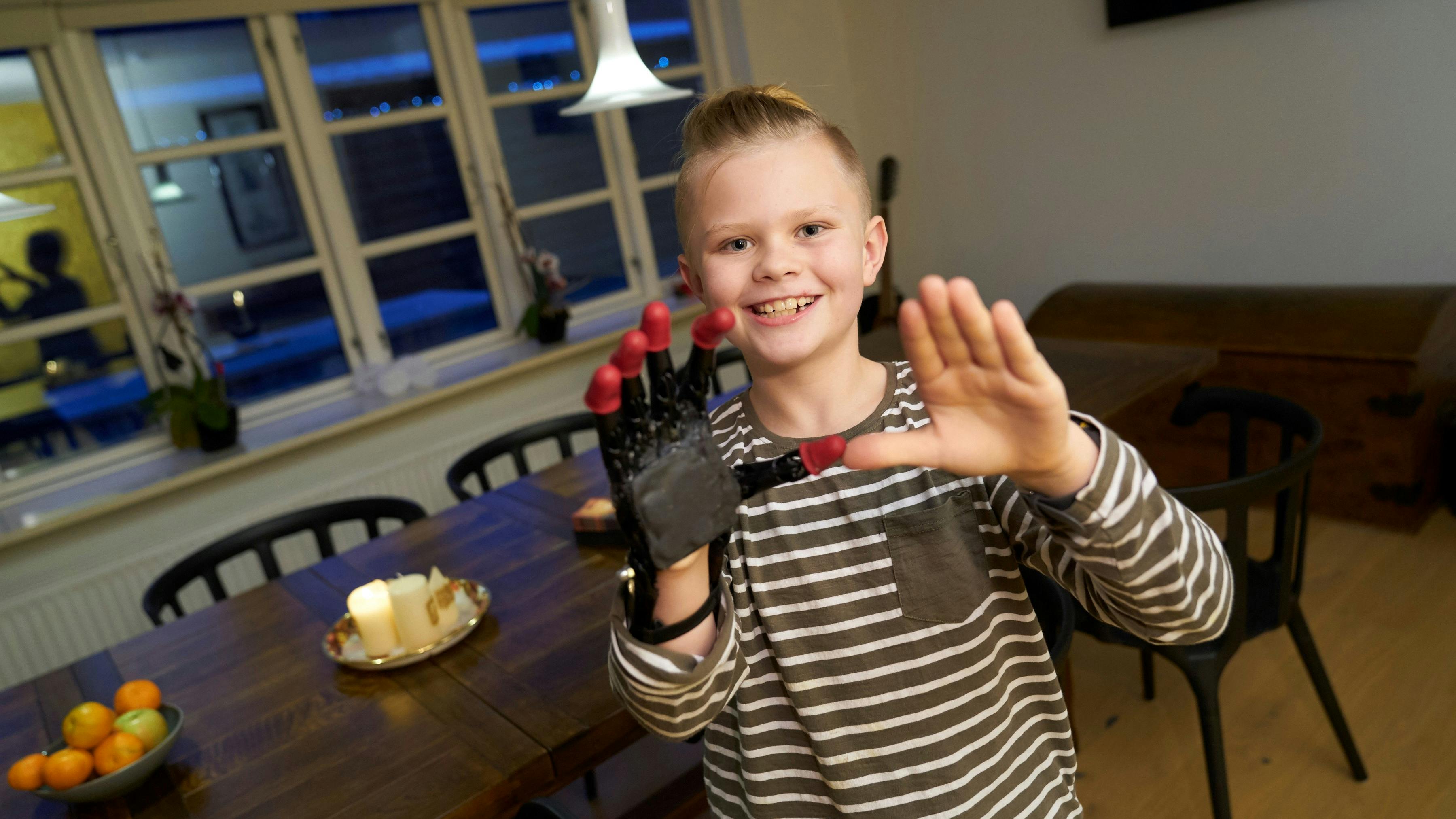 – Thomas tog nogle forskellige robothænder frem og spurgte, om Tristan havde lyst til at prøve den første, han havde bygget. Den var blevet for lille til Marc, så måske kunne Tristan passe den i stedet. Vi skulle dog ikke regne med noget, for den var jo lavet til en anden. Men Tristan var meget interesseret i den, så han tog den på, og den gled på med en pasform tæt på 100 procent, siger Mette og smiler ved tanken om sønnens reaktion, da han uden problemer bevægede robothåndens fingre og samlede en lille bold op fra bordet uden hjælp fra sin venstre hånd.