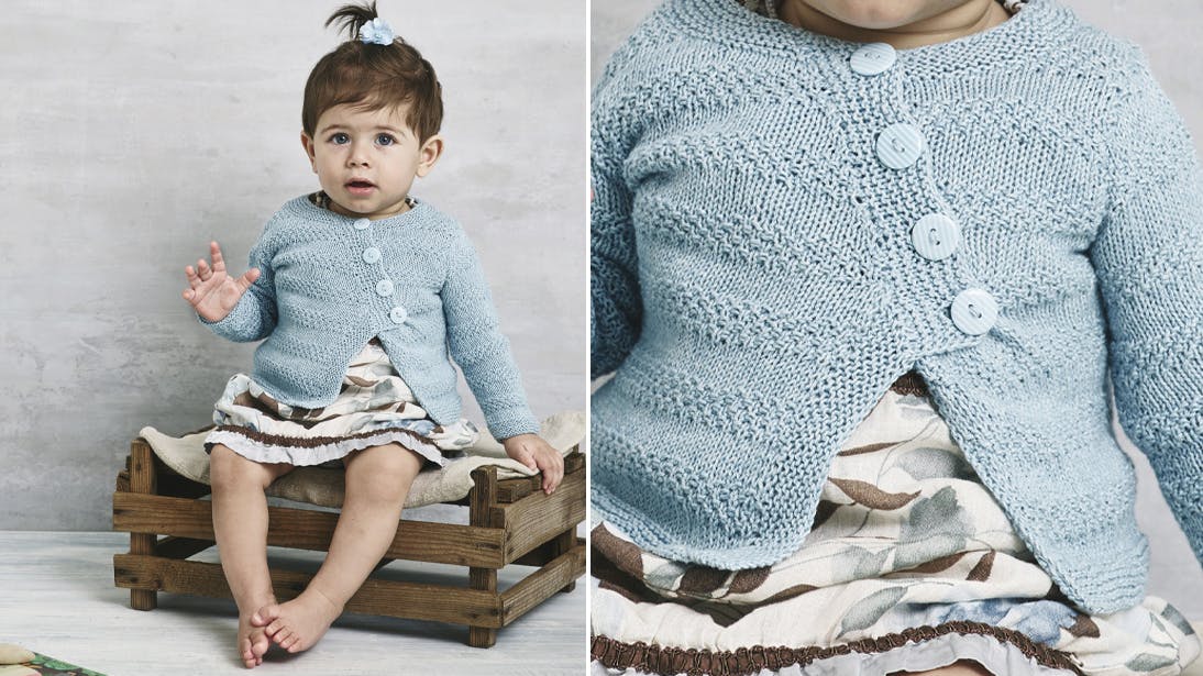 Info: Modellen strikkes frem og tilbage i tre dele, der sys sammen. Efterfølgende strikkes halskant og forkanter.