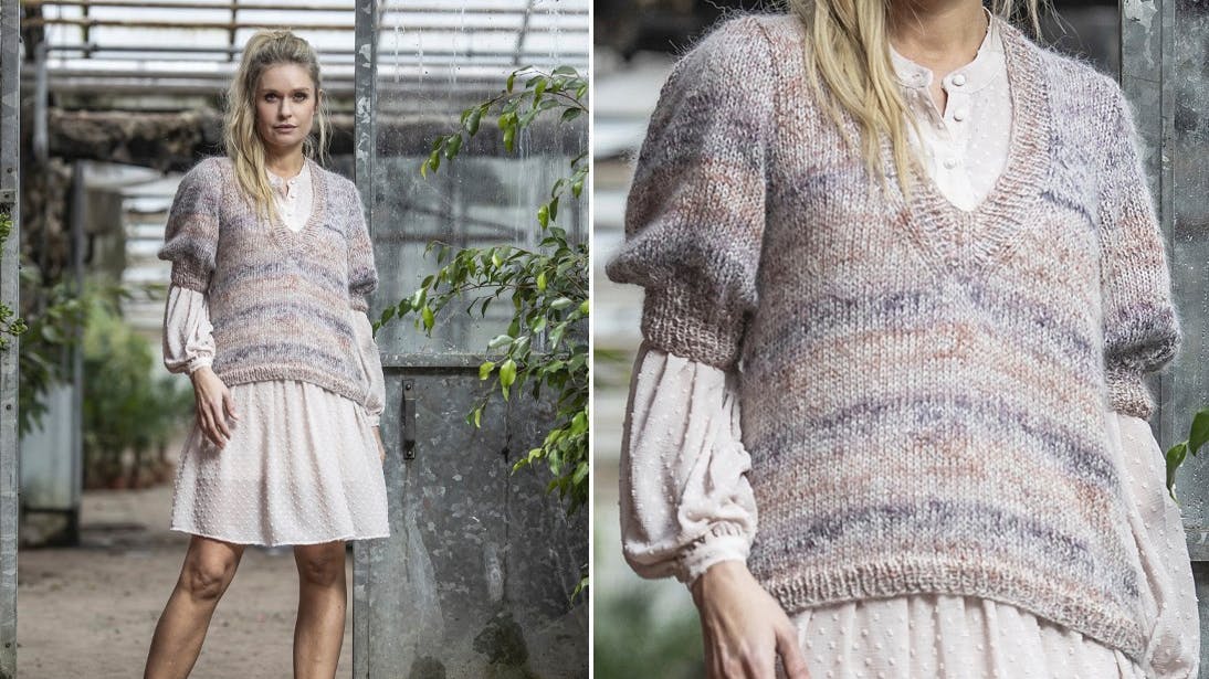 Info: Blusen strikkes nedefra og op med 1 tråd af hver kvalitet.