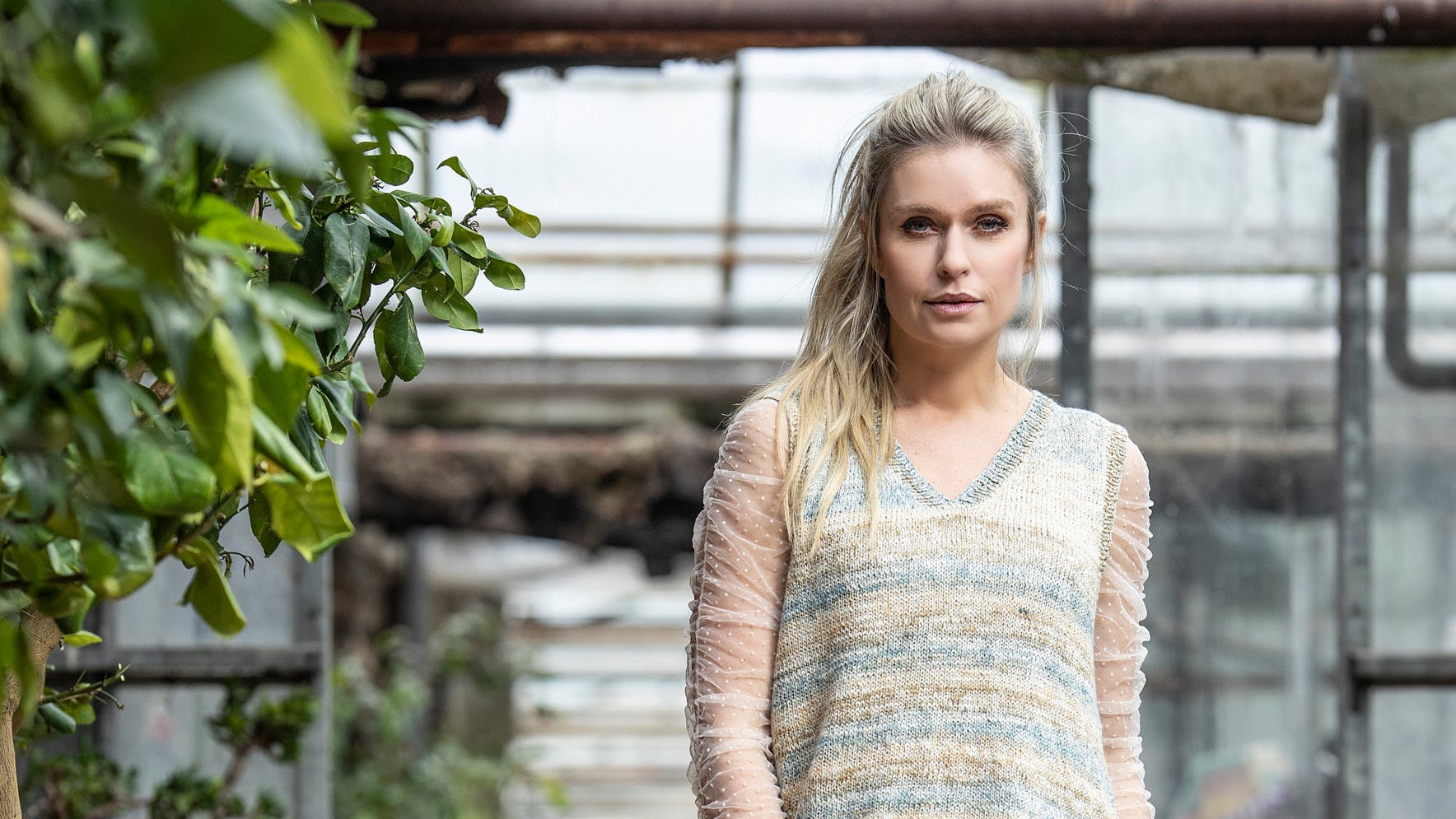 Info: Modellen strikkes oppefra og ned. Bagstykket strikkes først, derefter samles m op i opslagskanten til forstykker. Under ærmegabet samles stykkerne, og kroppen strikkes rundt i ét stykke.