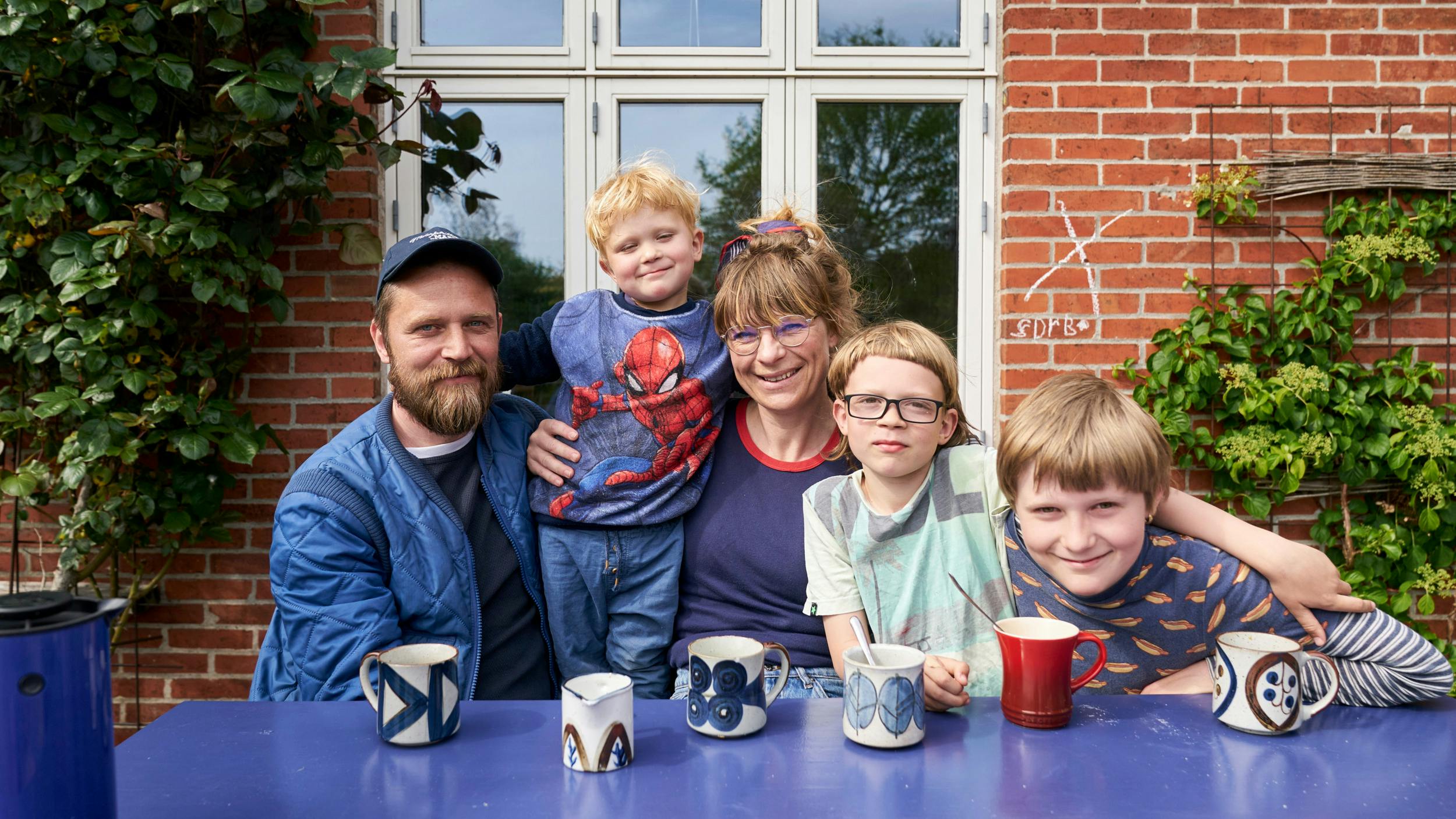 Hendes 45-årige ægtemand er ligeledes kunstner, men arbejder primært med lyd, og begge parter har kreative værksteder i huset, hvor de nu bor med deres tre sønner, Anker, Frede og Bjørn på 10, syv og tre et halvt år.