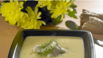 (4 pers.)30 min1 l vand250 g salt2 tsk. sukker5 peberkorn800 g torskefilet1 sød kartoffel1 porre2 gulerødder (150 g)250 g kartofler2 løg2 spsk.