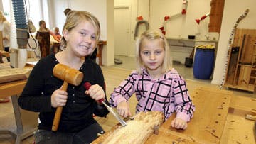 JEJSING: Eleverne på Jejsing Skole i Tønder Kommune fik travlt forleden. De fik nemlig til opgave selv at lave en helt ny legeplads efter deres egne ønsker. Og det var hele skolen med på. Så i stedet for at terpe dansk og regning stod den på bl.a. sløjdopgaver for de mindste. Her er tiårige Karen Bendix Iversen og den fire år yngre Fie Brandt Thomsen i gang med stemmejern og kroghøvl for at høvle samlingerne på de store stolper glatte.