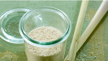 Rist risene gyldne på en tør stegepande ved middelvarme og jævnlig omrøring. Skær bunden af citrongræsset og træk det yderste lidt tørre lag af, inden det snittes fint. Miks ris og citrongræs fint i blender og hæld det gennem en grov sigte. Risene kan holde sig flere måneder i et tætsluttende glas og giver en dejlig smag i mange salater.
