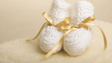 Slå (35) 37 (39) m løst op og strik 5 p r til kant. Forts med bølgemønster og riller som på jakke og kyse, men med (1) 2 (3) m r i begge sider. Strik 20 p mønster, derefter hulrække (som på kysen). Sæt de (12) 13 (14) m i begge sider på m-holder eller tråd, og strik videre i bølgemønster (men uden riller!) over de midterste 11 m (= overdel af fod), strik (4,5) 4,5 (5) cm lige op. Resten af foden strikkes r på hver p! Beg midt bag ved hælen og strik nu fodens sider: Strik r over de (12) 13 (14) m fra m-holder, strik (12) 13 (14) m op langs den ene side af fodens overdel, strik de 11 midterm, strik (12) 13 (14) m op langs modsatte side af fodens overdel og slut med de (12) 13 (14) m fra m-holder. Strik frem og tilb over alle m, i alt 12 p r. Afslut sålen sådan: ?Strik 20 m, vend og strik tilb (tag altid 1. m løst af ved vendinger og stram den lidt!), strik 14 m, vend og strik tilb. Luk (24) 26 (28) m på næste p?. Gtg ?-? i modsatte side.
