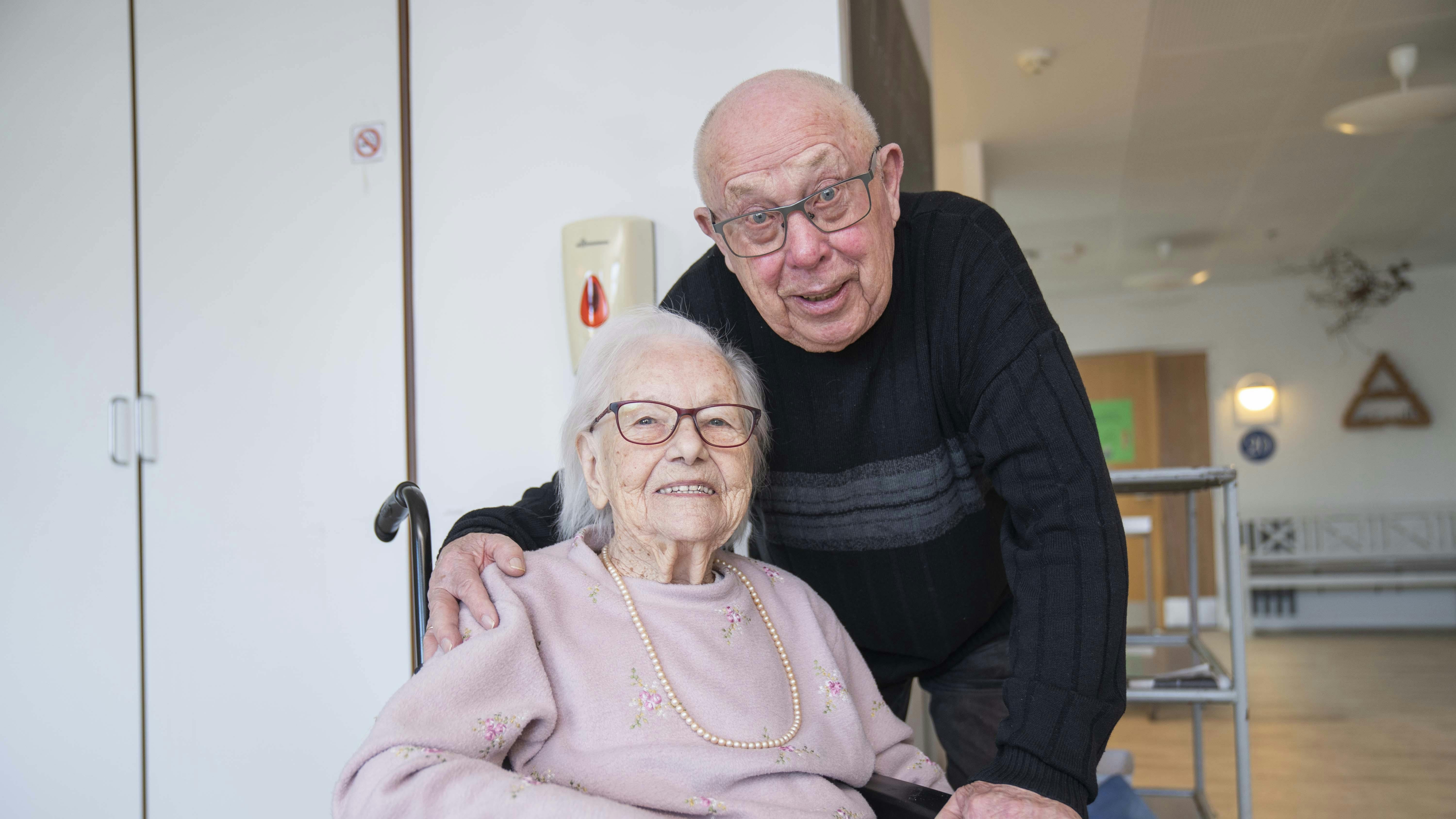 102-årige Marie har netop fået ordnet sine fødder, da Jens åbner døren ind til hendes værelse. Med hurtige skridt er han ovre hos hende og lægger kærligt en hånd på hendes skulder, og et smil breder sig helt op til øjnene.