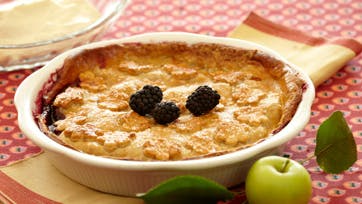 Skræl æblerne, skær dem i både og skær kernehuset væk. Kom æbler og smør i en gryde og lad æblerne mørne under låg ved jævn varme på ca. 5 min. Køl æblerne lidt af og smag dem til med sukker. Skyl bærrene, læg dem i bunden af en smurt tærteform eller et ildfast fad og drys dem med sukker. Fordel æblerne over bærrene.