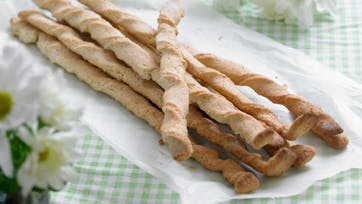 Rør smør og sukker sammen og pisk ægget i. Tilsæt mel, bagepulver og kornene fra vaniljestangen og ælt dejen sammen. Rul dejen ud i 5 mm tykkelse, pensl med mælk og skær den ud i 1 cm brede stænger. Sno stængerne og læg dem på en bageplade med bagepapir. Bag stængerne ved 220° i 10 min., dæmp varmen til 180° og giv dem yderligere 5 min. Lad stængerne afkøle på en rist og opbevar dem i en lufttæt kagedåse.