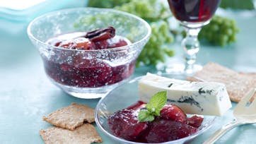 Blommer i krydret rødvin