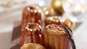 Smelt smør til formene og pensl alle formene grundigt. Fyld formene 2/3 op med dej og bag dem i en 160° varm ovn i 1½ time. Vend kagerne ud af formene. Kagerne falder en smule sammen og smager bedst, når de er helt nybagte, selv om de også kan spises dagen efter. De smager lidt af bagt creme inde i midten.