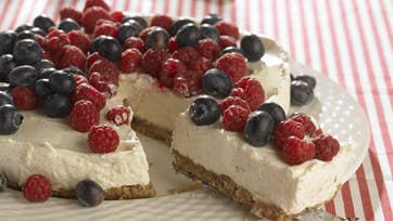 Bland smør og kiks og pres det ud i en springform. Pisk flødeost og sukker til glat. Pisk fløden til skum og rør den i sammen med vanilje og citron. Udblød husblas i koldt vand, smelt over vandbad og rør det i fromagen. Hæld det over kiksebunden og stil på køl. Server med sommerbær.