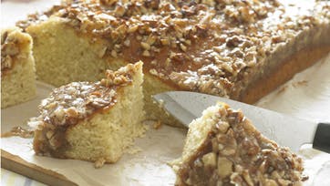 Pisk fløde, æg og sukker sammen og rør de øvrige ingredienser i. Hæld dejen i en 20 x 30 cm bradepande beklædt med bagepapir og bag din bradepandekage ved 200° i 20 min. Bland smør, sukker, mandler og mælk i en gryde og lad det koge op. Hæld mandelmassen over din bradepandekage og bag den i yderligere 10 min. ved 200°.