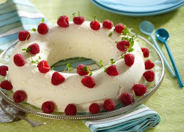 - Vend randen ud på et fad, pynt med friske hindbær og evt. citronmelisse og servér.