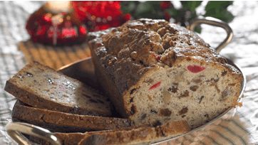 Rør smør og sukker godt og rør æggene i et ad gangen. Hak kirsebær, rosiner og valnøddekerner og bland dem med krydderier, bagepulver og mel. Rør blandingen i dejen skiftevis med orangemarmelade og portvin. Kom dejen i en smurt form, ca. 1 1/2 l. Bag kagen på nederste rille ca. 1 time ved 175°.