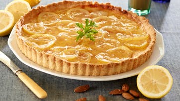 Dej: Hak mandlerne fint. Bland mandler, sukker, mel og citronskal og smuldr smørret i. Ælt dejen sammen med rom. Tryk den ud i en tærteform med løs bund. Prik bunden med en gaffel og bag den i den nederste del af ovnen ved 175° 12-15 min.