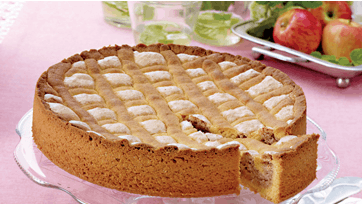 Rør smør og sukker hvidt. Rør æggeblommerne og mælken i, sigt hvedemel og bagepulver i. Ælt dejen godt igennem og stil den koldt 1 time. Tryk w af dejen ud i bunden og op ad siderne af en springform. Mal mandlerne og bland dem med sukker og stiftpisket æggehvider og vin. Kom mandelmassen i formen. Rul resten af mørdejen ud til en 2-3 mm tyk plade. Skær 1½ cm brede strimler af dejen og læg dem i rudemønster på kagen. Pensl med sammenpisket æg og bag kagen ved 180° i ca. 40 min. Lad kagen stå lidt i formen, inden den afkøler på en rist.
