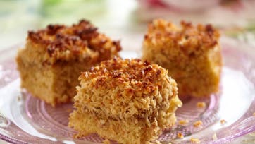 - Smelt smørret og bland det med muscovadosukker, kokos og mælk, kom fyldet over kagen og bag den yderligere i 10 min. ved 215°.