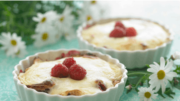 Fordel hindbær og knuste makroner i 4 ildfaste portionsskåle. Del ægget og pisk hviden stiv. Rør mascarponen med æggeblomme og flormelis og vend æggehviden i. Bred æggeblandingen over hindbærrene.