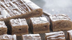 Bland kogende vand med sirup og natron. Afkøl. Rør smør og sukker luftigt. Bland æg og syltet ingefær i. Sigt mel, bagepulver og krydderier i. Fold så den afkølede sirupsmasse i skiftevis med melet. Kom i en bradepande 30 x 40 cm og bag ved 180° i 1 time. Lad den sætte sig 1 døgn før servering.