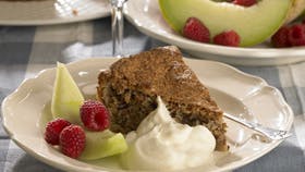 Del æggene i blommer og hvider. Pisk blommerne med sukker i 10 min., til det er helt lysegult. Kom vaniljekornene i og fold hasselnødderne i dejen sammen med smeltet, afkølet smør. Pisk hviderne stive og fold dem i. Kom dejen i fire smurte, bagepapirforede forme og bag ved 180° i 50-60 min. Kan fryses. Kan pyntes med sigtet flormelis og kan serveres med færdigkøbt is el. flødeskum samt frisk frugt.