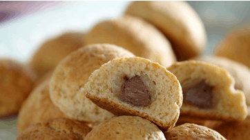 Smuldr smørret i melet og tilsæt bagepulver og sukker. Pisk æg og mælk sammen, rør det i og saml dejen. Del dejen i 16 stykker. Pres en skive marcipan og en skive nougat ind i hvert dejstykke og form dem til boller. Sæt dem på en plade med bagepapir og bag dem ved 200° i 20 min.