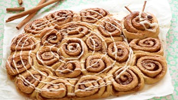 Lad dine kanelsnegle hæve i yderligere 25 min. og bag dem ved 185° i 15-20 min. Lad dine kanelsnegle køle af, rør flormelis og appelsinsaft til en glat glasur.