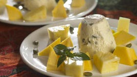 Kom sukker, 1 dl fløde og knækkede kardemommekap-sler i en gryde, og bring i kog. Kog i 10 min., til smagen af kardemomme er tydelig, og sukkeret er helt opløst. Si lagen og afkøl. Pisk resten af fløden til skum og pisk dette i. Tilsæt hakkede pistacier (gem lidt til pynt) og frys i forme natten over. Vendes ud og pyntes med pistacier og serveres med tern af mango og ananas.