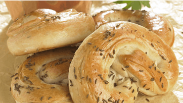 Lun mælken. Rør gær og mælk glat. Smuldr smørret i melet og tilsæt gærvæsken. Kom sukker, salt og kommen i og ælt dejen godt igennem. Stil den til hævning tildækket og lunt ca. 1 time. Ælt dejen let igennem og del den i 10-12 stykker. Tril stykkerne i lillefingertykke stænger og form dem til kringler. Læg kringlerne på plade med bagepapir og lad dem efterhæve lunt mindst ½ time. Pensl med æg og klap kringlerne med kommen, så det hænger fast. Bag dem 15-18 min. ved 200° på ovnens midterrille. Afkøles på en rist.