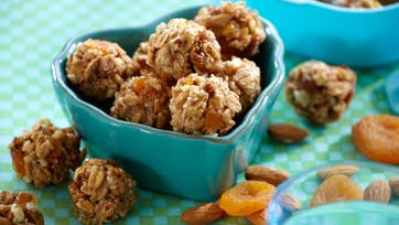 Hak figner, abrikoser og mandler og bland dem med speltflager og kokosmel. Smelt smør, sukker og sirup på en pande ved lav varme. Vend blandingen i sukkermassen, bland godt og lad det varme godt igennem. Lad blandingen afkøle lidt og form den til 2 cm store kugler. Lad kuglerne afkøle helt på et stykke bagepapir. Opbevar de kolde myslikugler i en kagedåse eller en anden lufttæt beholder.