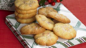 Rør smør og sukker sammen og rør æg og mælk i. Tilsæt vaniljesukker, mel og bagepulver og rør dejen godt igennem. Kom dejen i en kagesprøjte med en blomsterplade på og sprøjt den ud på en plade med bagepapir. Drys med perlesukker, bag kagerne ved 190° i 10-15 min. og lad dem afkøle på en bagerist.