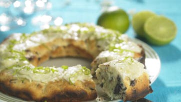 Pisk smør og sukker sammen, til det smuldrer. Rør æggene i skiftevis med melet. Hak chokoladen groft og vend den i sammen med limeskal og -saft. Hæld dejen i en smurt randform (22 cm) og bag den i ovnen ved 200° i 20 min., og lad den afkøle på en rist. Rør flormelis med limesaft og -skal og fordel glasuren over den afkølede kage.