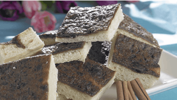 Rør gæren ud i mælk, der gerne må lunes let. Smelt smørret og kom det i med æg, sukker, salt, kardemomme, citron og noget af melet. Rør så meget mel i, at dejen kan æltes. Ælt så i mindst 5 min., til dejen er glat og smidig. Lad den hæve til dobbelt størrelse. Slå dejen ned og rul den ud, så den kan være i en bradepande foret med bagepapir. Jeg brugte bradepanden til ovnen og fik en meget flad, men lækker kage. Hvis du vil have mere dejtykkelse, skal du bruge en lidt mindre bradepande og så bage lidt længere tid. Rør fyldet blødt og smør det over hele dejen og bag ved 175° i 20 min. Mærk om dejen er bagt, ellers giv 5-10 min. mere.