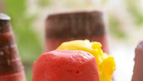 Pisk æggehviderne stive og vend frugtmassen forsigtigt med æggehviderne. Kom cremen i ispindeforme, sæt pinde i og frys dem i mindst 4 timer.