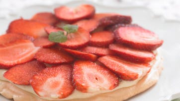 Del ægget, pisk hviden stiv og pisk den blank med flormelissen. Smør marengsmassen, til din marengsbund, ud i en 20 cm cirkel på et stykke bagepapir og bag din marengsbund ved 120° i 1½ time, til den er let og gennembagt. Riv skallen og pres saften af limefrugten. Rør æggeblommen med limesaft, fløde, majsstivelse og rørsukker og kog blandingen op under omrøring, til den tykner. Lad blandingen afkøle og rør yoghurten i. Fordel yoghurtcremen over din marengsbund og pynt med jordbær i skiver og revet limeskal eller citronmelisse.