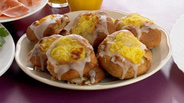 Bland alt det tørre til dejen i en skål. Lun mælken, opløs gæren og lad smørret blive meget blødt heri. Rør det i og ælt dejen grundigt i 10 min. Evt. med en anelse mere mel. Lad den hæve 1 time tildækket. Del dejen i 2 portioner. Rul hver portion ud til et 72 cm langt og 8 cm bredt rektangel. Skær hver portion i 9 kvadrater på 8 x 8 cm - altså 18 kvadrater i alt. Rør remoncen sammen til en jævn masse. Læg en klat på midten af hver kvadrat. Luk ind fra hvert hjørne og klem til. Anbring pakkerne på en plade beklædt med bagepapir. Kog cremen sammen under omrøring til den er tyk. Kom en skefuld creme på hver lukkesamling og efterhæv ½ time. Bag ved 225° i 15 min. Tag ud og pynt med smeltet chokolade og glasur efter smag. Kan fryses, før der pyntes, og så lunes direkte i ovnen.