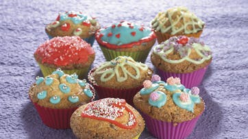 Muffins er mange børns foretrukne kager, måske fordi deres størrelse passer til en børnehånd - og så kan de dekoreres med sukkerpynt og glasur i sjove farver