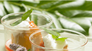 Skold nektarinerne og træk skindet af. Bland Campari, appelsinskal og sukker i en gryde. Læg nektarinerne hele i gryden, kog op og lad det koge 3-4 min. under låg. De skal føles bløde. Tag nektarinerne op og kog lagen lidt ind ca. 10 min. Server nektarinerne med den lune lage og flødeskum eller vaniljeis.