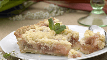 Rul dejen ud på et meldrysset bord og læg den i en tærteform ca. 28 cm. Prik dejen med en gaffel og forbag den ved 200° ca. 5 min. Hæld rabarberkompotten i og fordel smuldredejen. Dæmp varmen til 175° og bag pien færdig på ca. 30 min.
