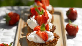 Sprøde havrekager med hyldeblomstfløde og jordbær