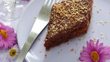 Pisk sukker og æg luftigt og bland mel, vanilje, kakao og bagepulver. Rør melblandingen i skiftevis med mælk og olie. Kom dejen i en 35 x 40 cm bradepande, bag den ved 190° i 30 min. og lad den afkøle. Rør alle ingredienserne til glasuren sammen til en ensartet masse. Smør glasuren på kagen og drys med ristet kokos.