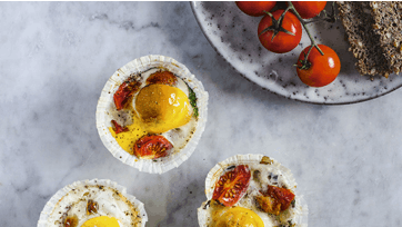 Bag dem i ovnen ved 180º i 15-18 min., til æggemassen er fast, men stadig blød.