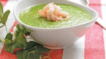 Smag til med salt og peber, tilsæt rejer og server med godt brød.