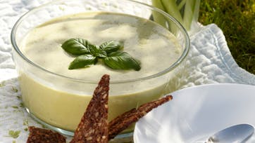 Rens porrerne og skær dem i skiver. Skræl kartoflerne og skær dem i tynde skiver. Pil og hak skalotteløget. Svits grønsagerne i en gryde i smørret ved jævn varme. Tilsæt bouillon og fløde og kog under låg, til kartoflerne er møre (ca. 15 min.). Tag gryden fra varmen. Skær agurken i skiver og vend dem med grønsagerne. Blend grønsagerne fint med suppen og smag til med citronsaft, salt og peber. Stil suppen i køleskab.