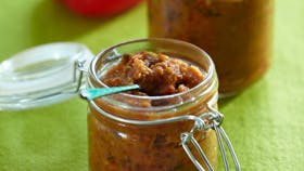 Ajvar er en form for relish eller grønsagspuré, der kan købes færdig i mange, store supermarkeder og hos etniske købmænd. Man kan dog også lave den selv, f.eks. efter denne enkle opskrift.